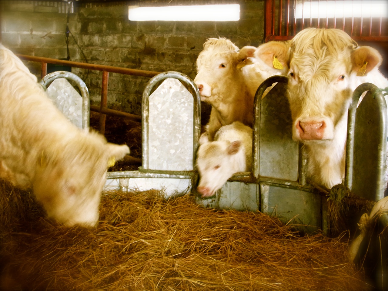 Vendredi le 27 février, après notre marche de la matinée à Glendalough – où on avait rencontré le troupeau des chèvres – j’ai suivi Brid chez elle pour voir son bébé (veau). (Elle a 4 ‘bébés’ humains mais qui sont déjà tous très grands, jeunes adultes et étudiants!) Il venait tout juste de naître la veille dans la soirée, tout frais, tout mimi! J’ai été vraiment heureuse de voir tous ces beaux animaux et d’en faire des photos! … quoi que j’ai mis tous mes vêtements dans la machine à laver en rentrant… comme me disait Brid, l’odeur des vaches s’imprègnent dans vos habits!