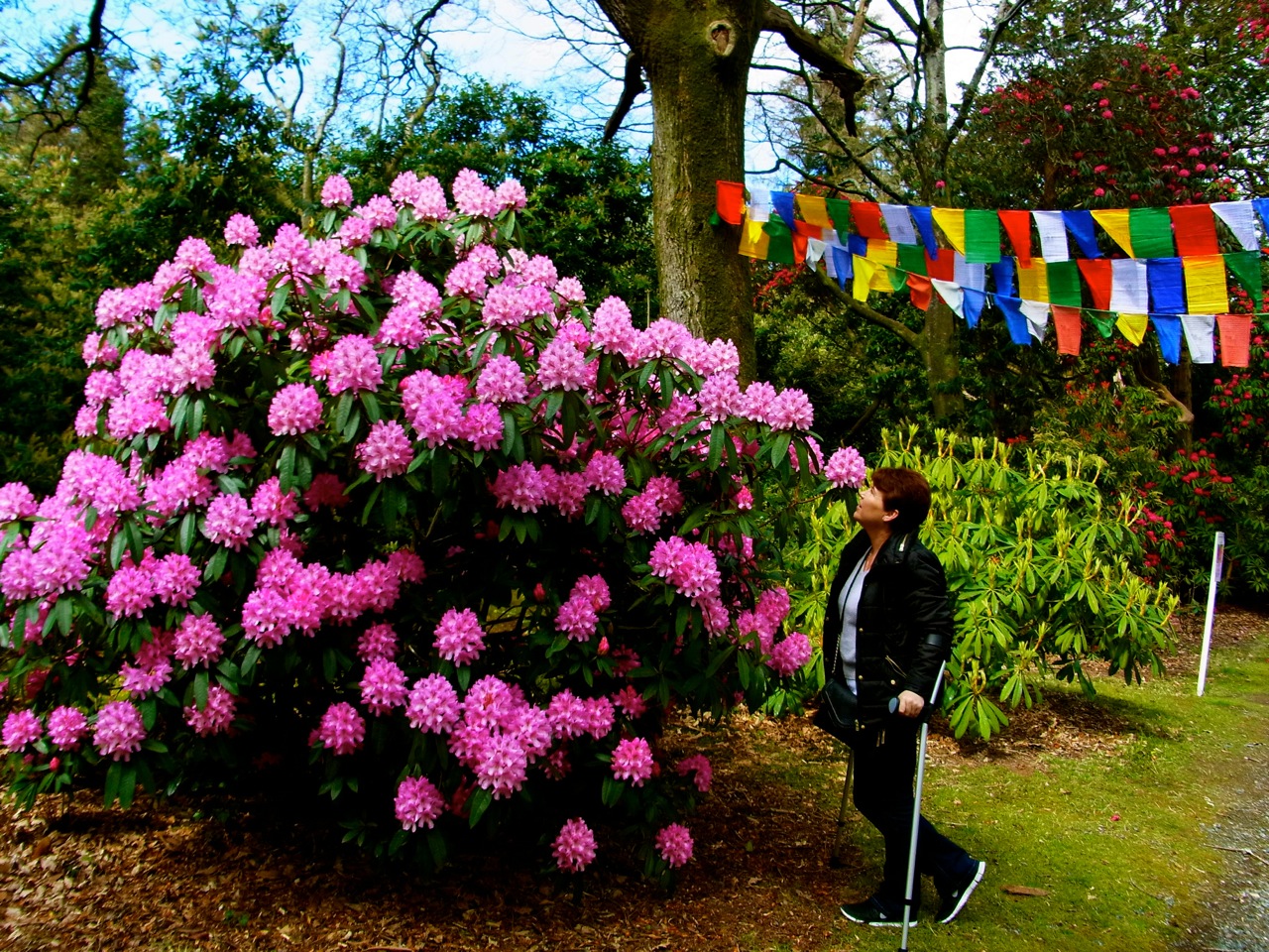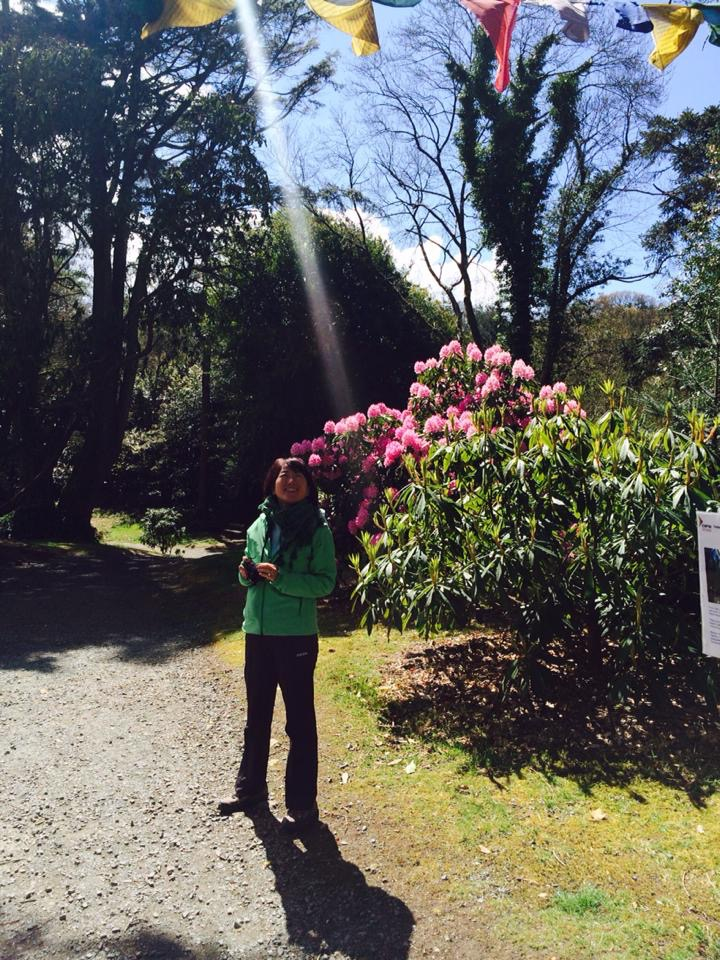 ( Kilmaccuragh promenade on 29 April). We’ve seen these very colourful ‘Prayer flags’ from Tibet. Found the following explanation on a panel about the connection between Kilmaccuragh and Buddhist regions of the Himalaya.