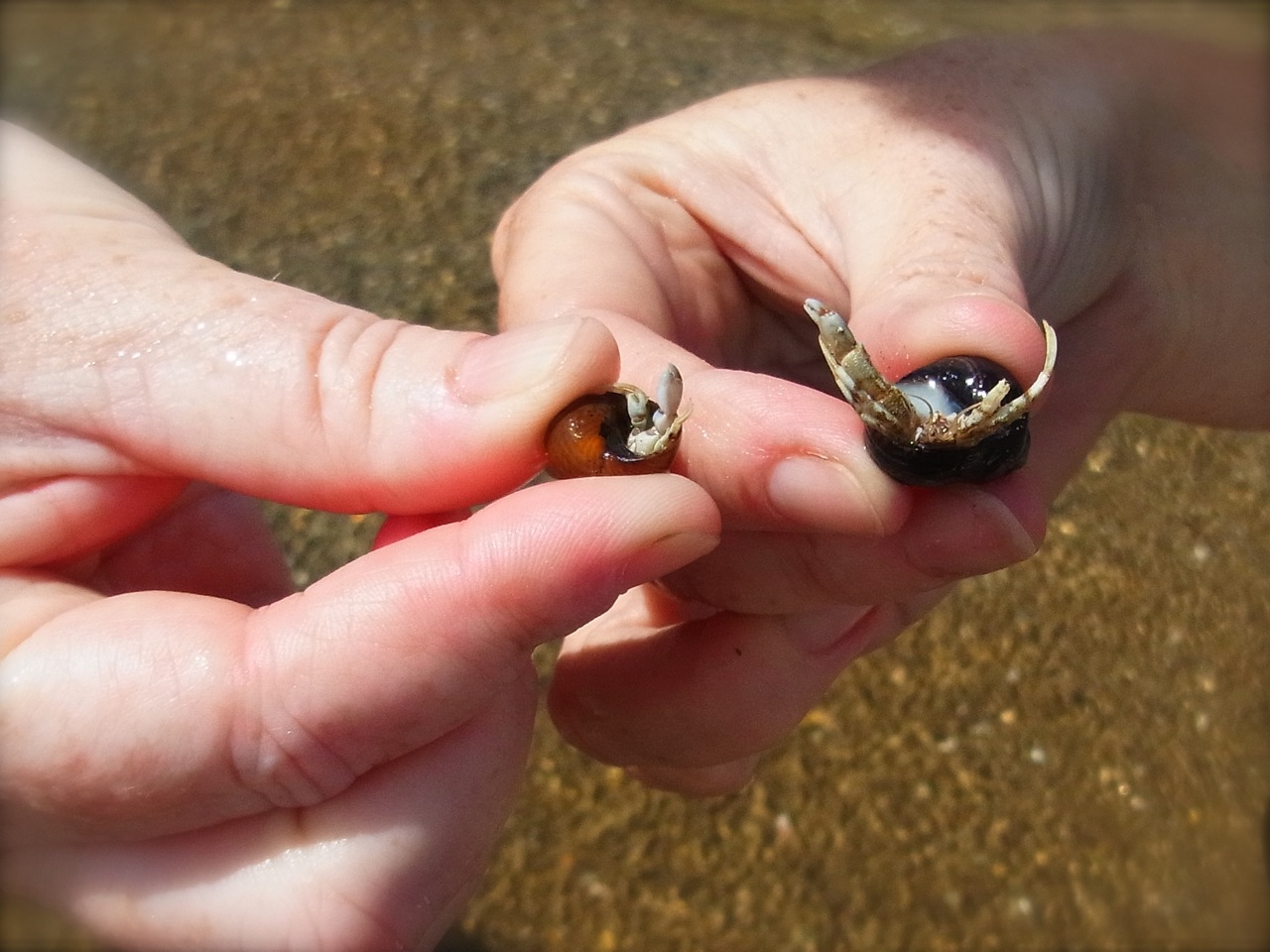 子どものころの夏休みは、いつも山へ出かけることが多かったから、「夏の砂浜」なんて、あまり記憶にない。でも波に乗ってころころ転がるヤドカリが、なんだか懐かしく感じてしまいました。