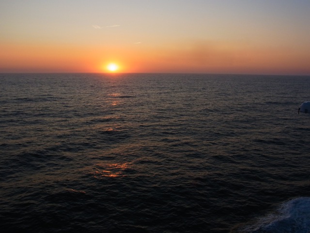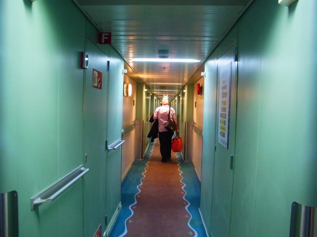 キャビンはふつうのホテルの部屋のよう。ベッドもなかなか寝心地良く、シャワーも熱いお湯がちゃんと出るし、通路をたどって外に出ると、広い海を見渡せて気持ち良かった。