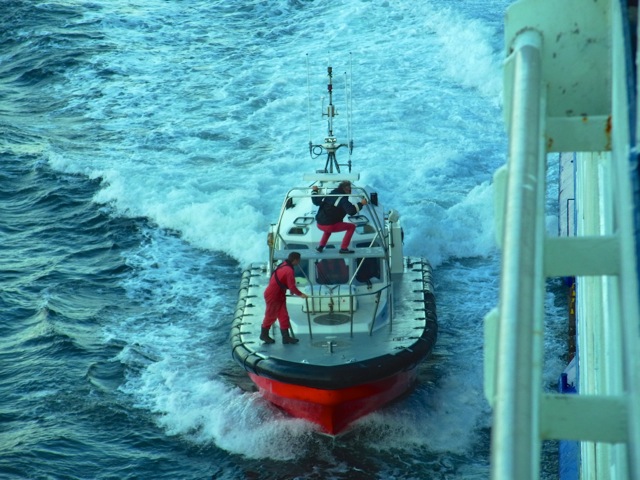 Et puis à l’approche du port, vous avez un guide, qui vient sauter littéralement sur le ferry.