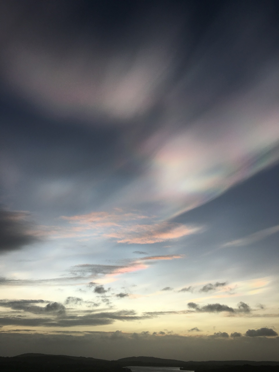I took lots of photos and we were wondering if it was a kind of ‘aurora’, but actually it must be ‘nacreous’ according to the explanation give in ‘the Irish TImes” .