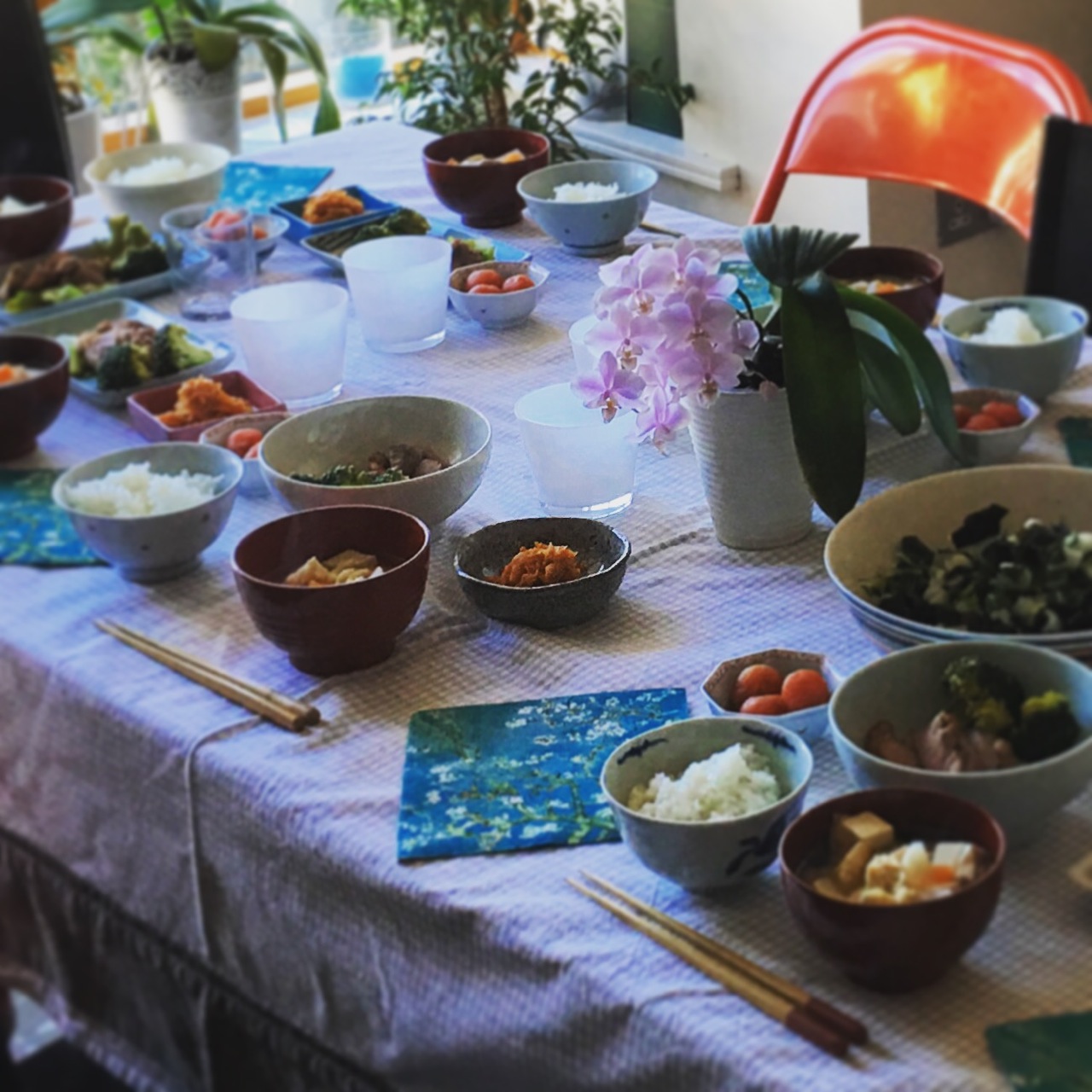 「ご飯と汁とおかずと、全部いっぺんに並べて食べるんですよ〜」とか、「お箸は手前に左向きに置くんですよ〜」とか、そんなことも説明したり・・・ おしゃべりで盛り上がって、なんと午後3時まで。 無事に終わってホッとしました。