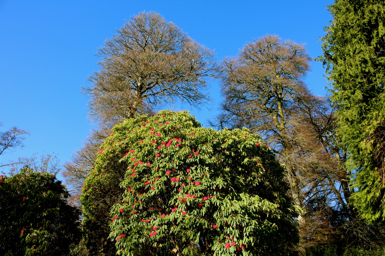 キルマカラーはジャングルみたいな大きな庭園。早くも石楠花の花が咲き始め、これから5月ごろまで次々に咲くのです。