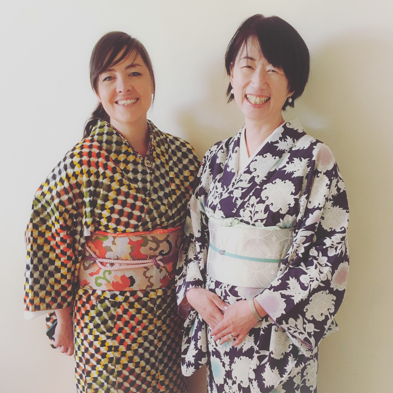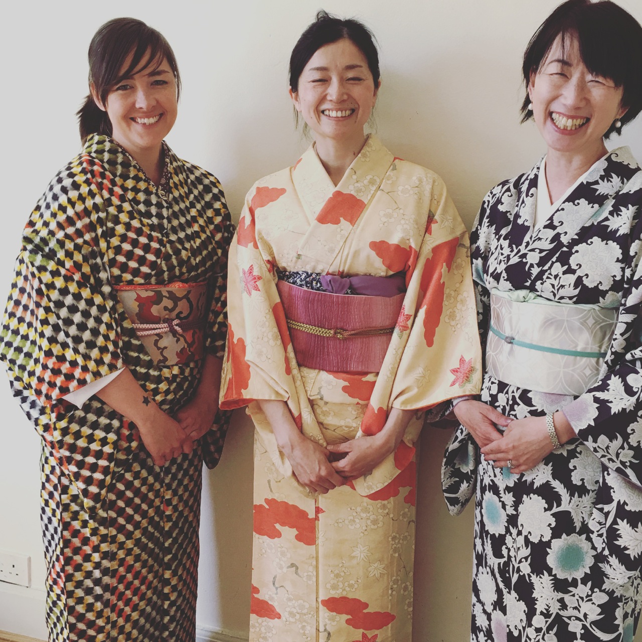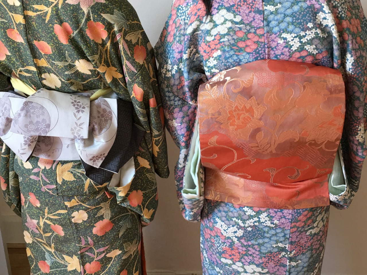 この日は、日本から持ち帰った着物を、あまり鏡を見ずに着ました。まだまだいっぱい練習が必要です〜。