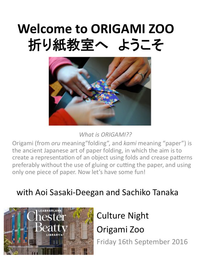 Our first experience for Origami Workshop in Chester Beatty Library in Dublin, with Aoi san.