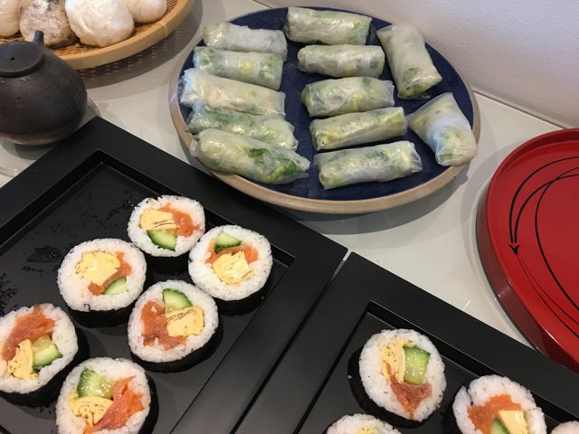 おにぎり、海苔巻き (あまるぐらいいっぱい、持ち寄りいただきました!)
