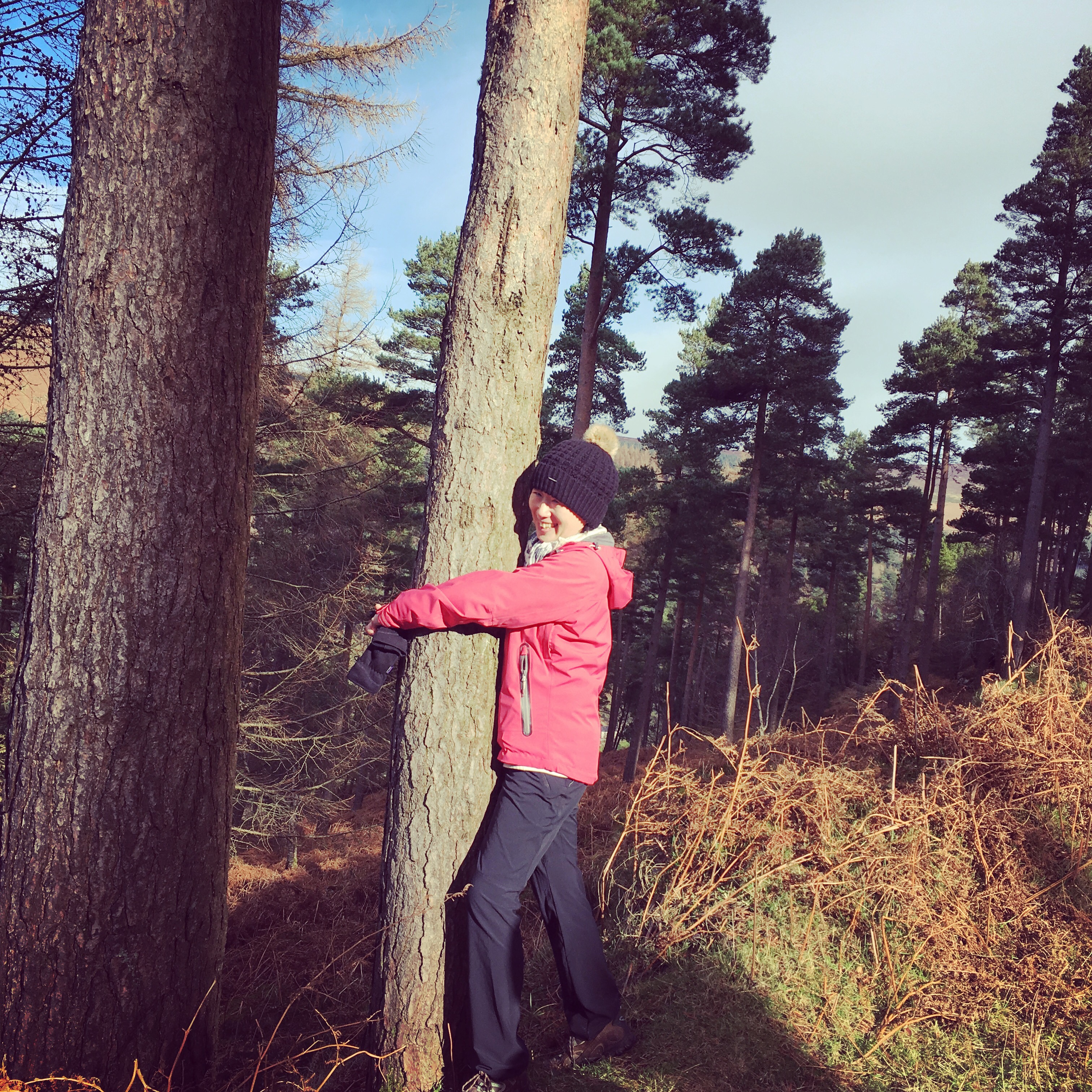 「木をハグすると幸せになるんだよっ」と友だちに教えてもらったので、さっそく実践したのでした。