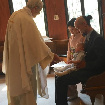 Our grand son Koh’s christning done in Tokyo, on 22 March, at Sophia University SJ House, Kulture Heim Chapel. Lovely celebration.