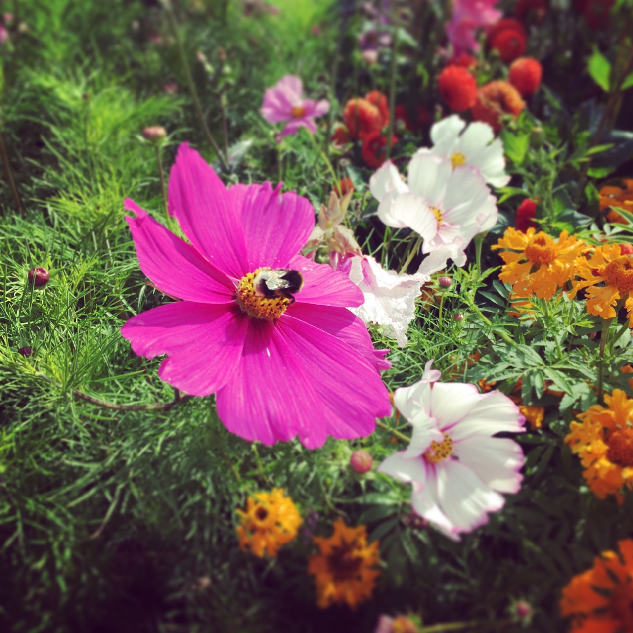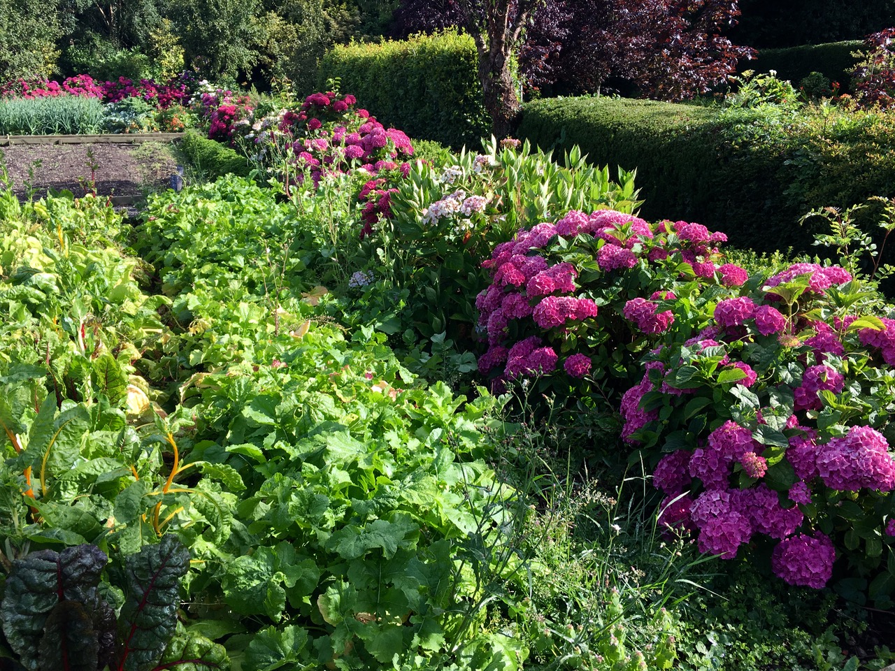 Veggie garden just after the rain. Lovely smell and beautiful summer flowers.