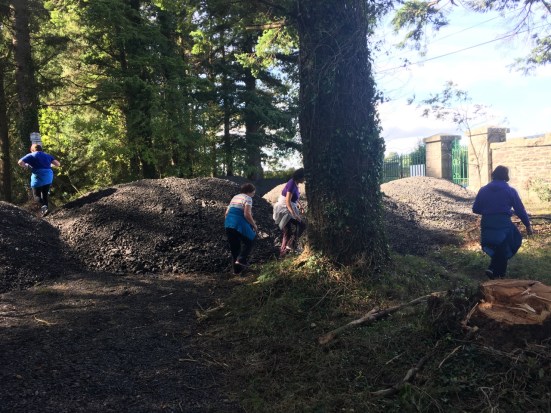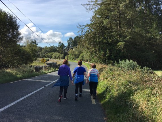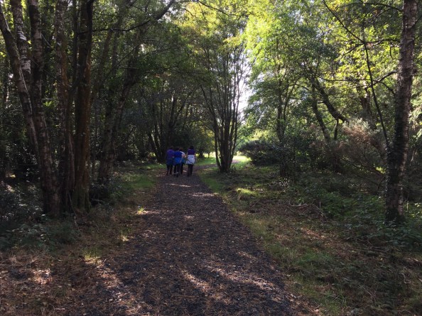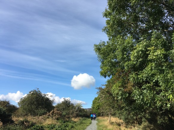 10:43 反対側を今度は村の方角へ向かって歩きます。かなり長い。(つづく)1047 On traverse un petit ruisseau (il n’y a pas (encore) de pont. Il devrait y avoir très bientôt, il paraît. 山のほうから小さな川が湖へ向かって流れているところを、石づたいに渡ります。10:50 遊歩道の整備が進んでいて、ここに橋ができる予定だけど、まだできてないので。le futur pont !1106 途中、まだ遊歩道が整備されていないので、車道に出て歩きます。R755。いつもダブリンへ行き帰りに車で通る道です。(下の地図)