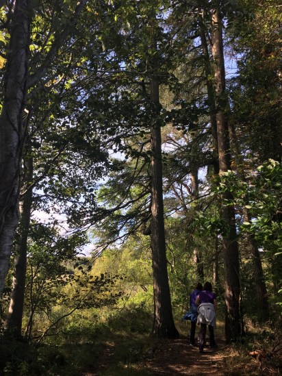 11:10 車道からまた遊歩道へ戻り、村の方角へ向かって歩きます。Après un bout sur la route, on reprend le chemin piéton sous le bois.1114 車道からダムのほうへ入るゲートのあるところまで帰ってきました。遊歩道の整備に使う砂利が積んであった。湖のこちら側の岸は、まだ整備作業中。1115 この真っ直ぐなところがダムの上の道。1127 村の近くまで戻ってくると、遊歩道沿いは大きな松の木がいっぱい。