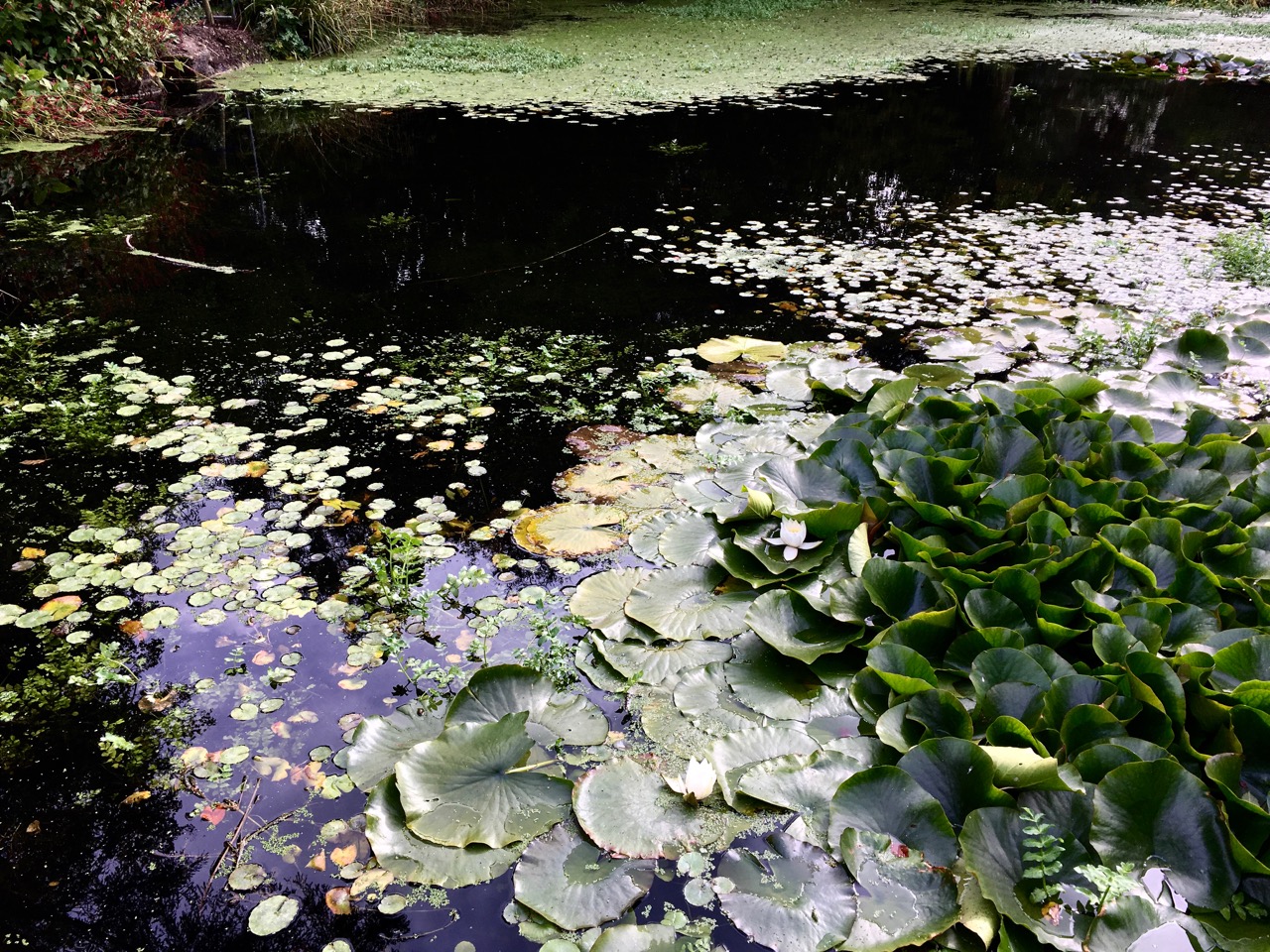 Lovely colors and different shades green, water running through the pond. Always nice to come there.
