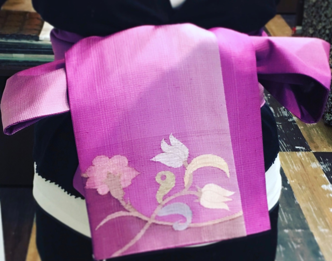 sachanの課題は、今回も引き続き 半幅帯結び。