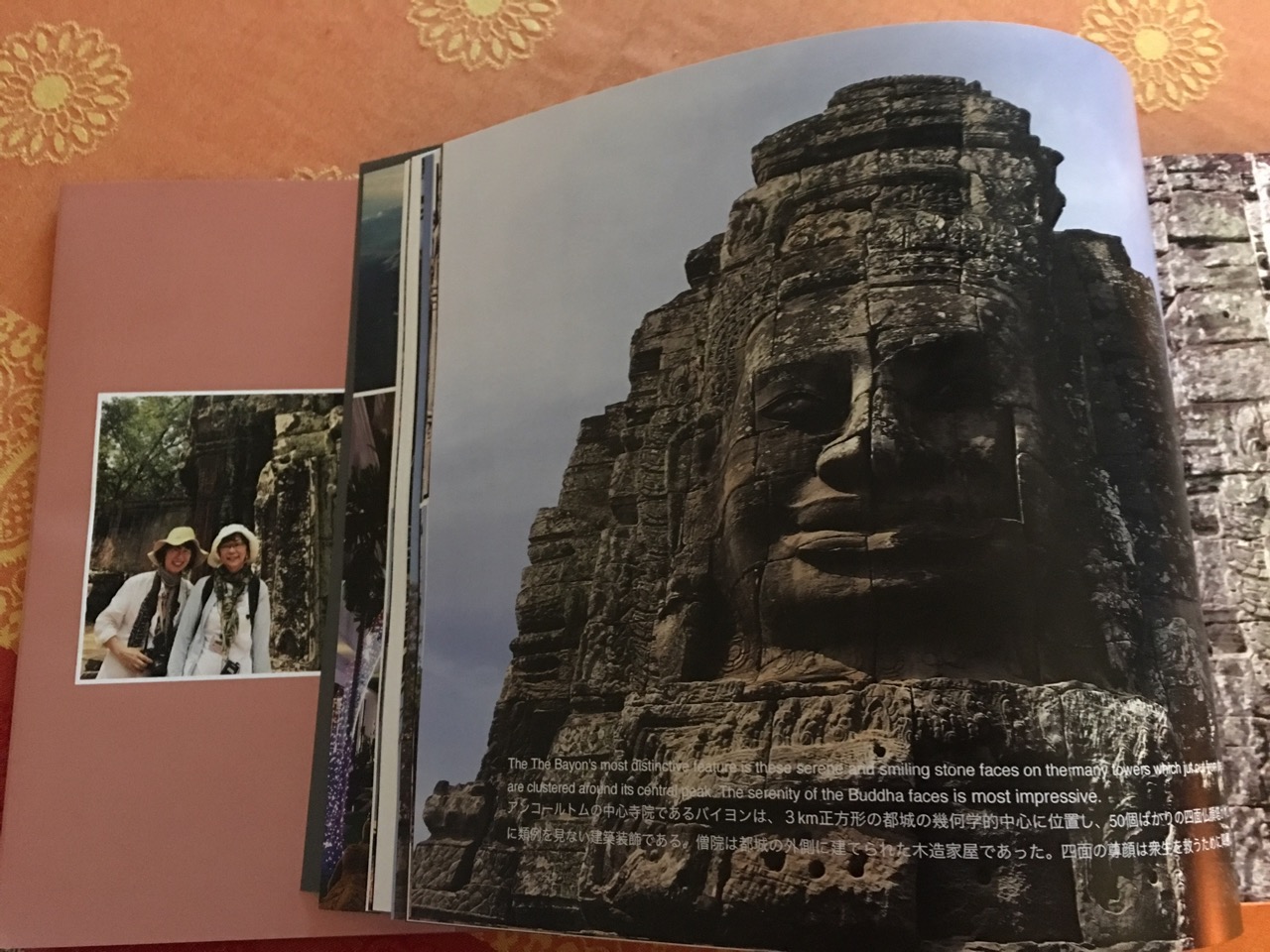 カンボジアに行かせてくれて家で留守番していてくれたバーニーや、東京の家族にもわかりやすく、それから自分たちの記憶のためにも、石澤先生のご著書を読んだり調べたりして、英語と日本語両方で解説をつけました。現地でお知り合いになった先輩の服山さんと岡山さんからプレゼントしていただいた本 薄い小冊子のように見えるのに内容がぎっしりつまっていて読み応えがあります。アルバムを作ったおかげで、現地では酷暑のなか必死で歩き回った場所の持つ歴史的な意味や、建築物に見られる昔の人たちの技術や知恵、そして伝統的なカンボジアの人たちの心のなかまで、のぞくことができました。