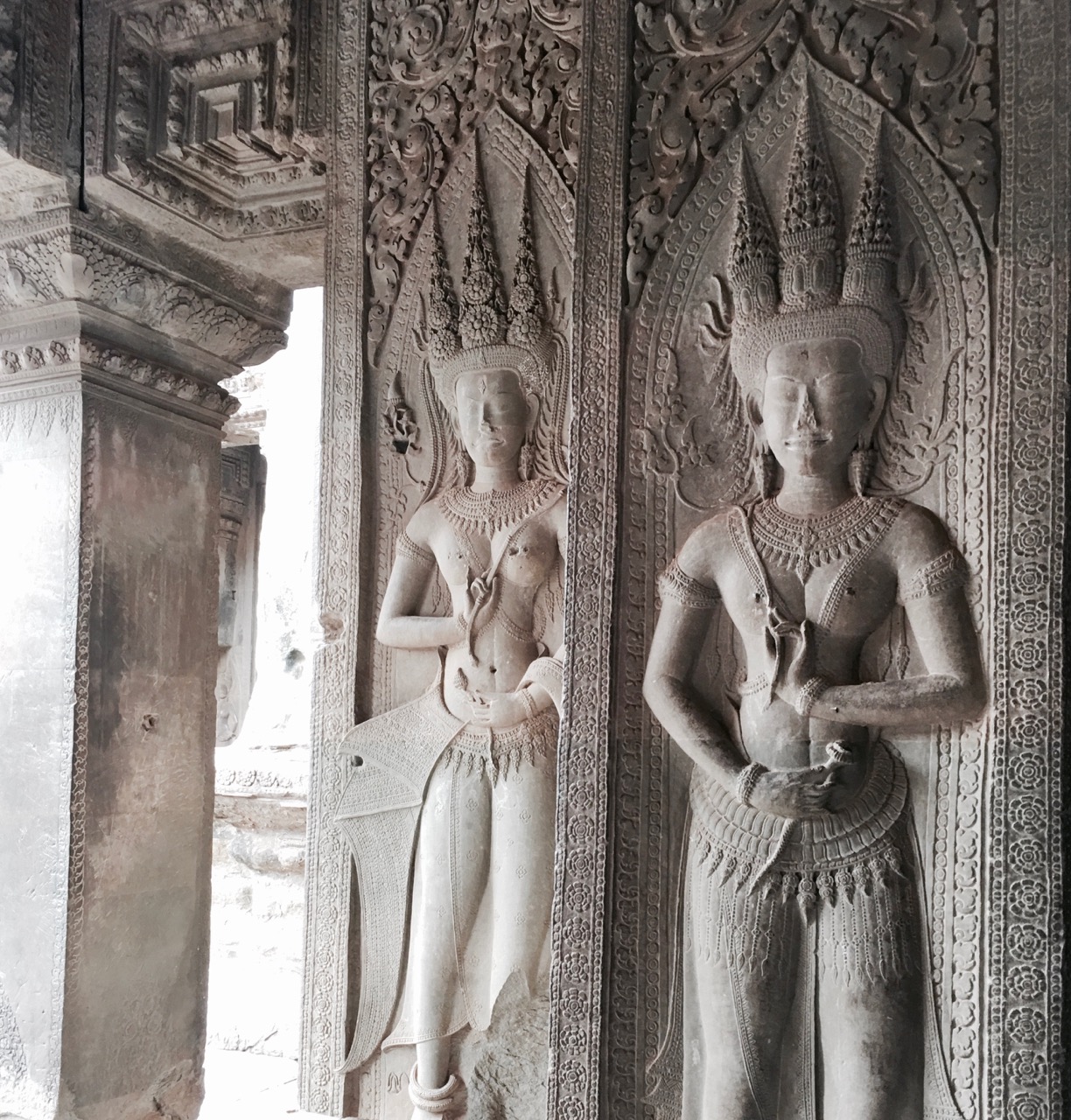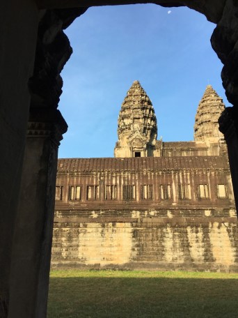 アンコールワットは整然とした幾何学的平面展開、高い塔堂がクメール的な調和のなかに立体的に配置された、さながら神の世界である。この寺院を建てたスールヤヴァルマン2世は、1113年に約30年ぶりに国内を統一した。碑文にはまるで疲れを知らない鉄人と記されている。現人神として神がかり的な王権で支配したのだ。
