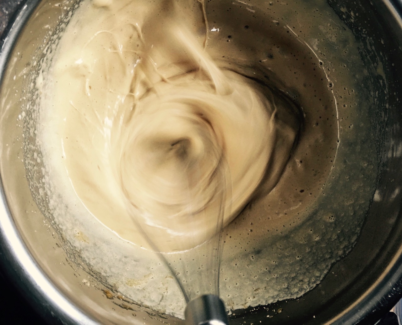 1. Fouetter les œufs avec le sucre jusqu’à ce que le mélange soit bien mousseux.
