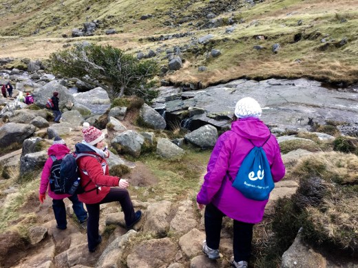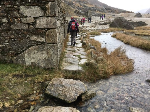 A la descente, les nouveaux ponts ont été installés et on a l’impression que c’est plus agréable à marcher. Vers la fin du trajet, au ‘village des mineurs’, c’était toujours innondé, mais maintenant il y a des dalles qui longent le chemin.