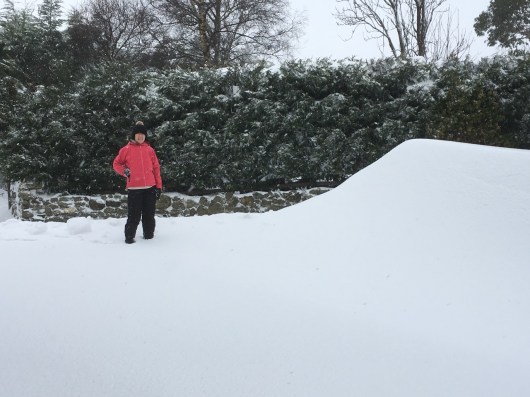 Fin février- début mars, on a eu une ‘grosse’ quantité de neige, exceptionnelle pour ici. C’était à cause de ‘la grosse bêbête de l’est ‘ – The Beast of the East.