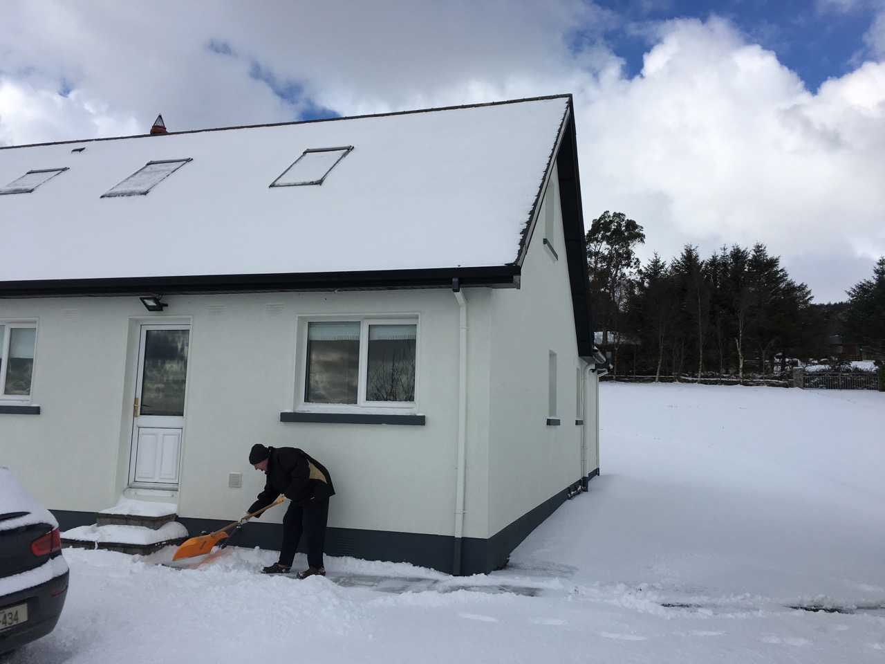 Mais enfin c’est quand même pas sorcier, surtout en considérant que la même quantité était chose quotidienne en Autriche!! La différence est qu’il ne se passait rien pendant une semaine… et ensuite le pays entier était en panique. Les gars du coin ont sorti leurs grosses machines agricoles pour dégager les routes (puisqu’ils ont besoin d’atteindre leurs montons et vaches pour les nourir! ), l’armée est venue nettoyer les rues dans le village ( les écoliers devaient aller à l’église pour la cérémonie de confirmation!). C’était donc la manière très irlandaise de résoudre la situation qui était intéressante pour moi.