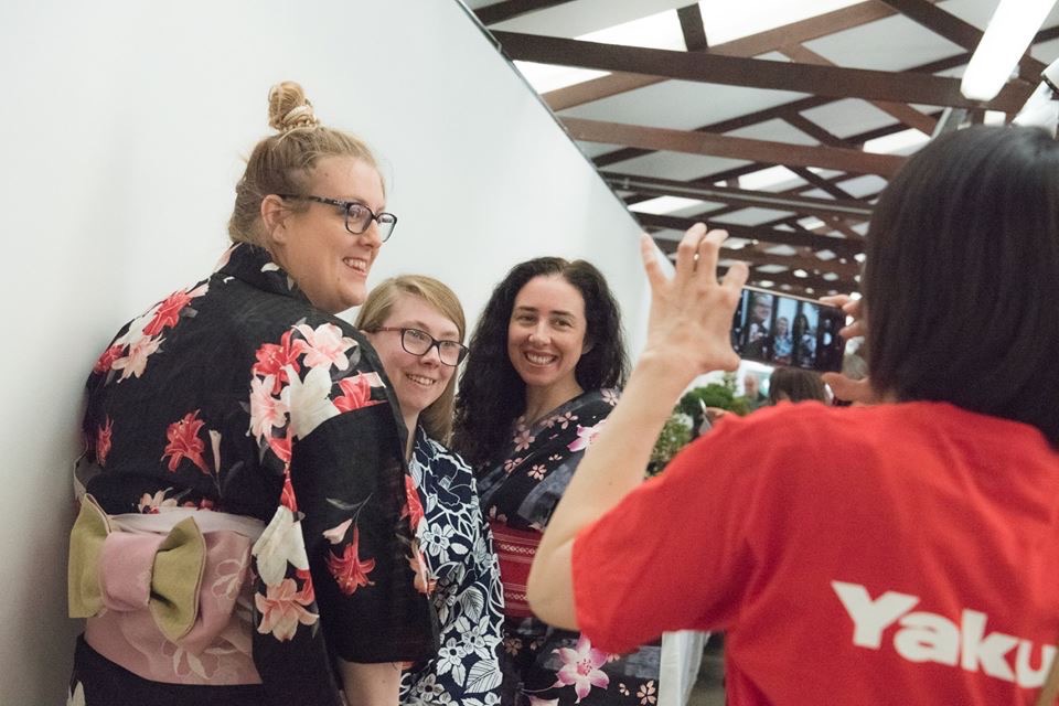 わいわいアイルランドの人やいろんな国籍の人たちに浴衣を着せてあげる、毎回大人気のコーナーです。