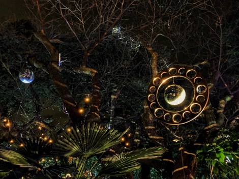 月と太陽というコンセプトがあったそうです。木を丸く切って金属のもの打ち付けてて、何やってるのかなあーって思ってたら、こんな世界ができていて、びっくりしました。