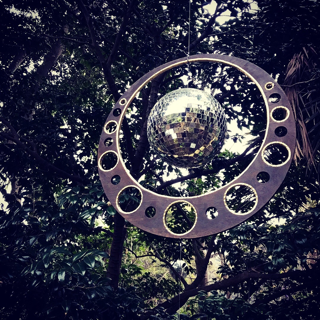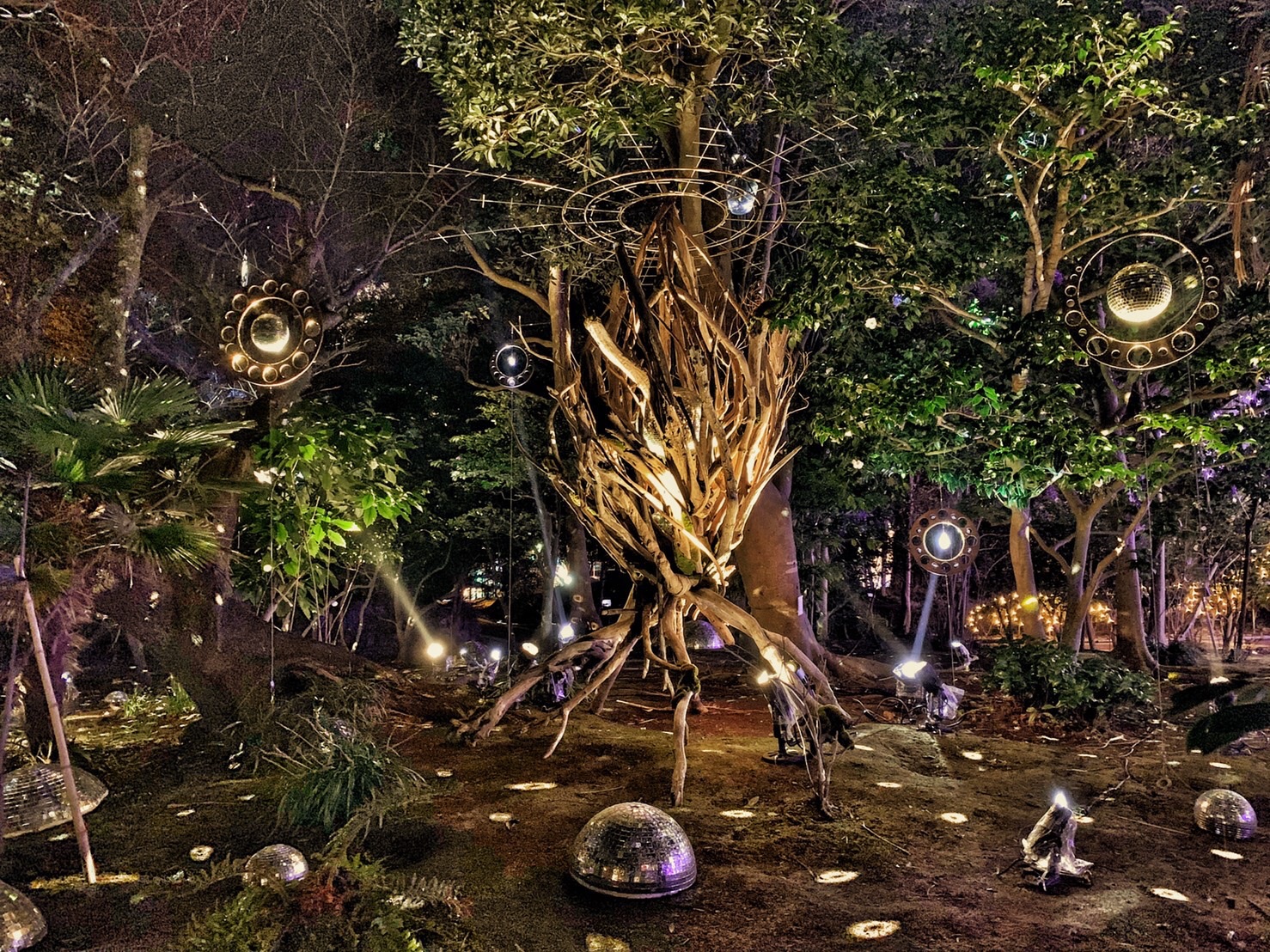 月と太陽というコンセプトがあったそうです。木を丸く切って金属のもの打ち付けてて、何やってるのかなあーって思ってたら、こんな世界ができていて、びっくりしました。