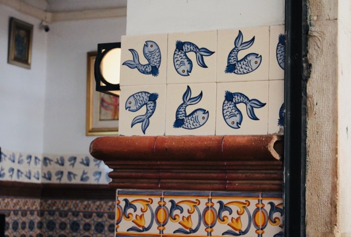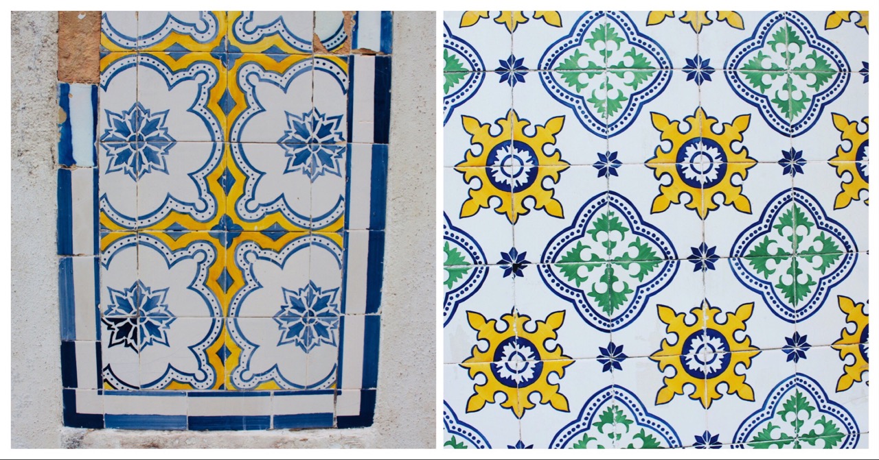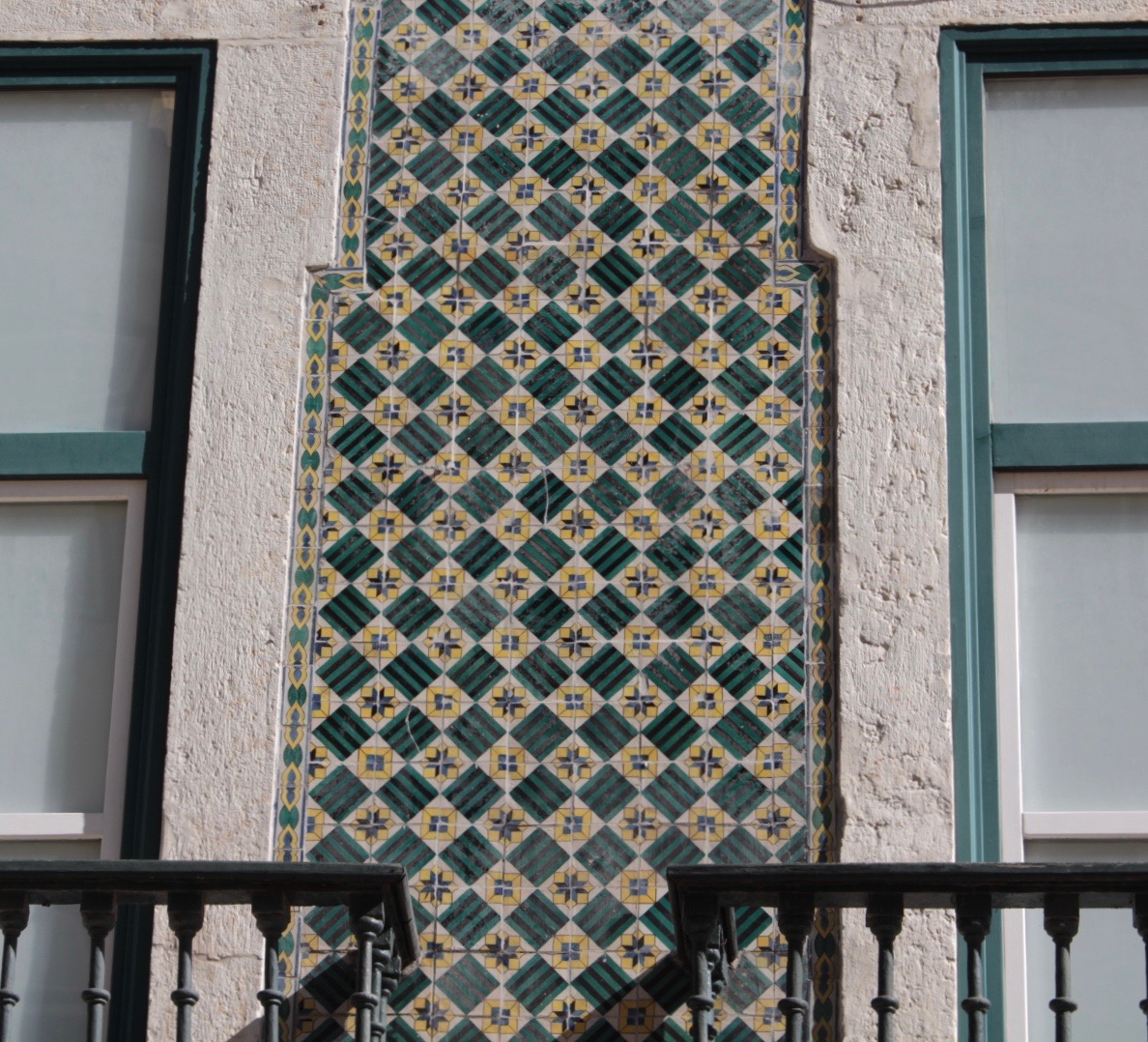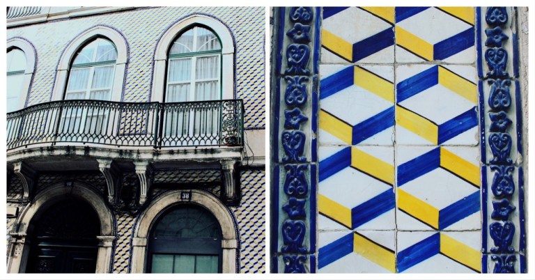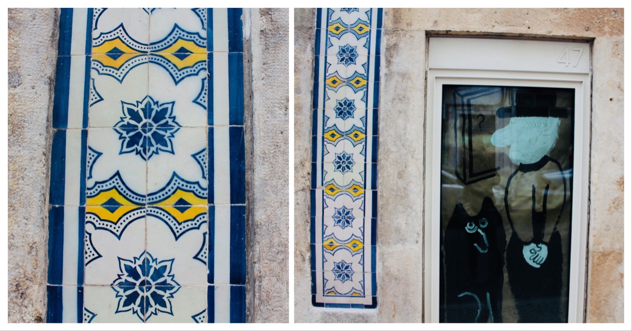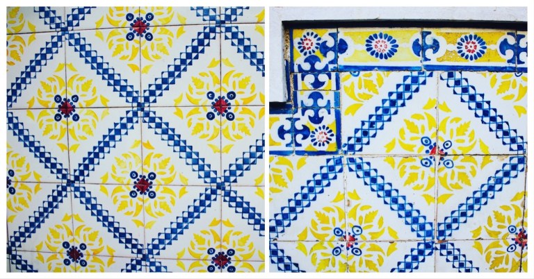 Trop mimis, ces motifs des carreaux à Lisboa… Je n’ai pas pu m’empêcher de prendre des photos partout, à chaque fois que je passais devant une maison carrelées. Et il y en a partout! En regardant au retour sur l’histoire du pays et des techniques qu’ils ont adoptés des Maures, j’ai appris que ces carreaux des façades (et de l’intérieur) sont appelés Azuléjos.