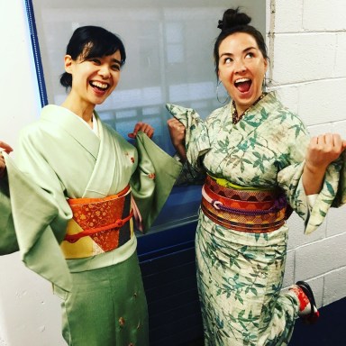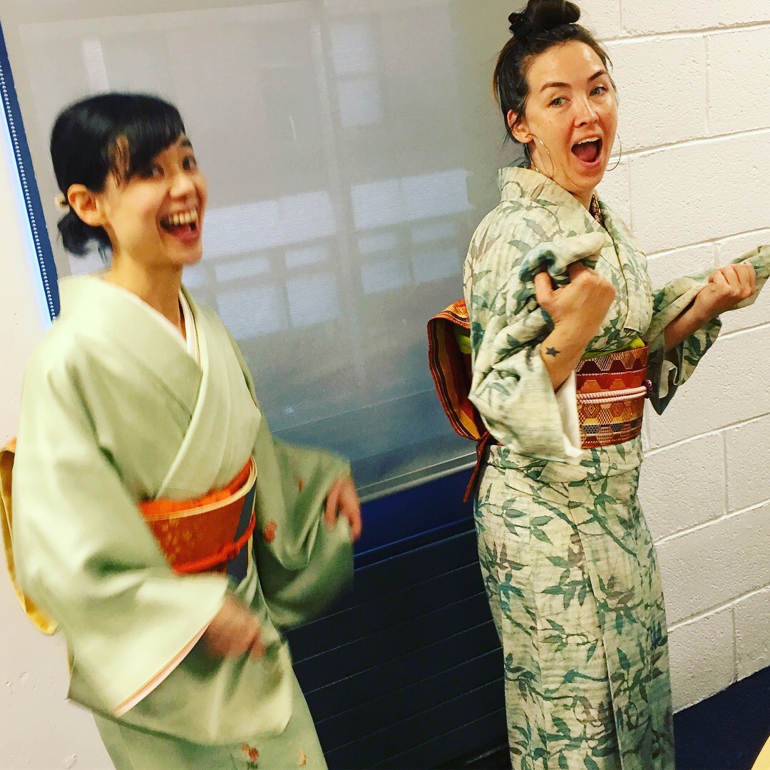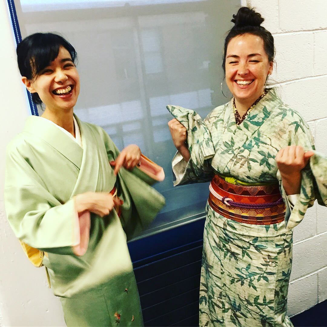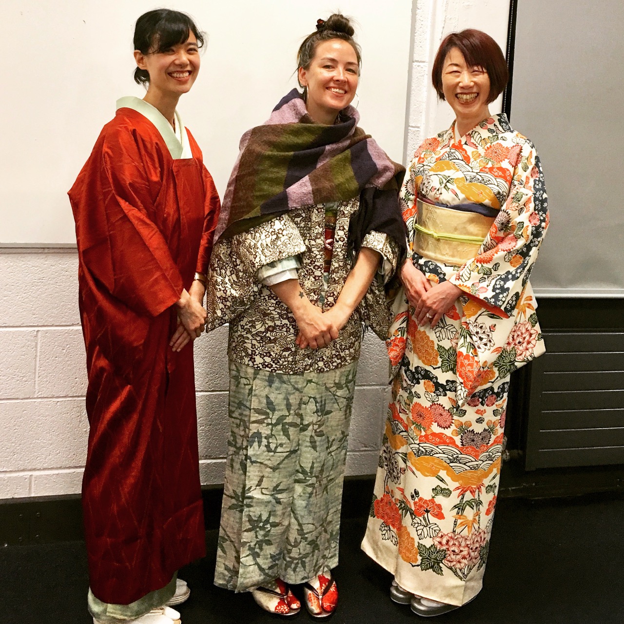 思えば何年か前にAkikoさんたちがデモンストレーションしていたのを応援に行ったのがきっかけで、着付けを習うようになったのです。いつもながら、着物の先輩エミリーと上智同窓のAkikoさんに感謝。