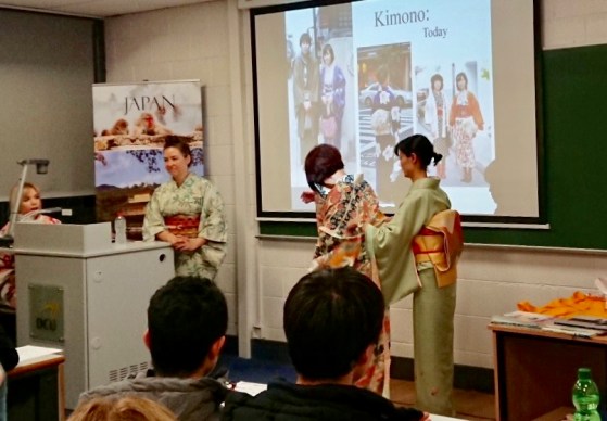 le 4 mars. Le lendemain de la fête des filles, Hinamatsuri, on a fait la démonstration de kimono à DCU.