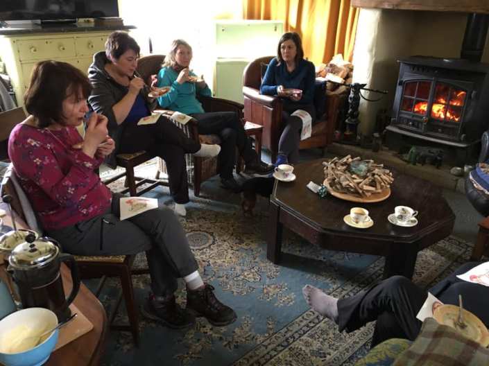 暖かい大きな暖炉の前に座って、皆でわいわい美味しいお菓子でお茶やコーヒーを飲んで、すっかりリラックス。