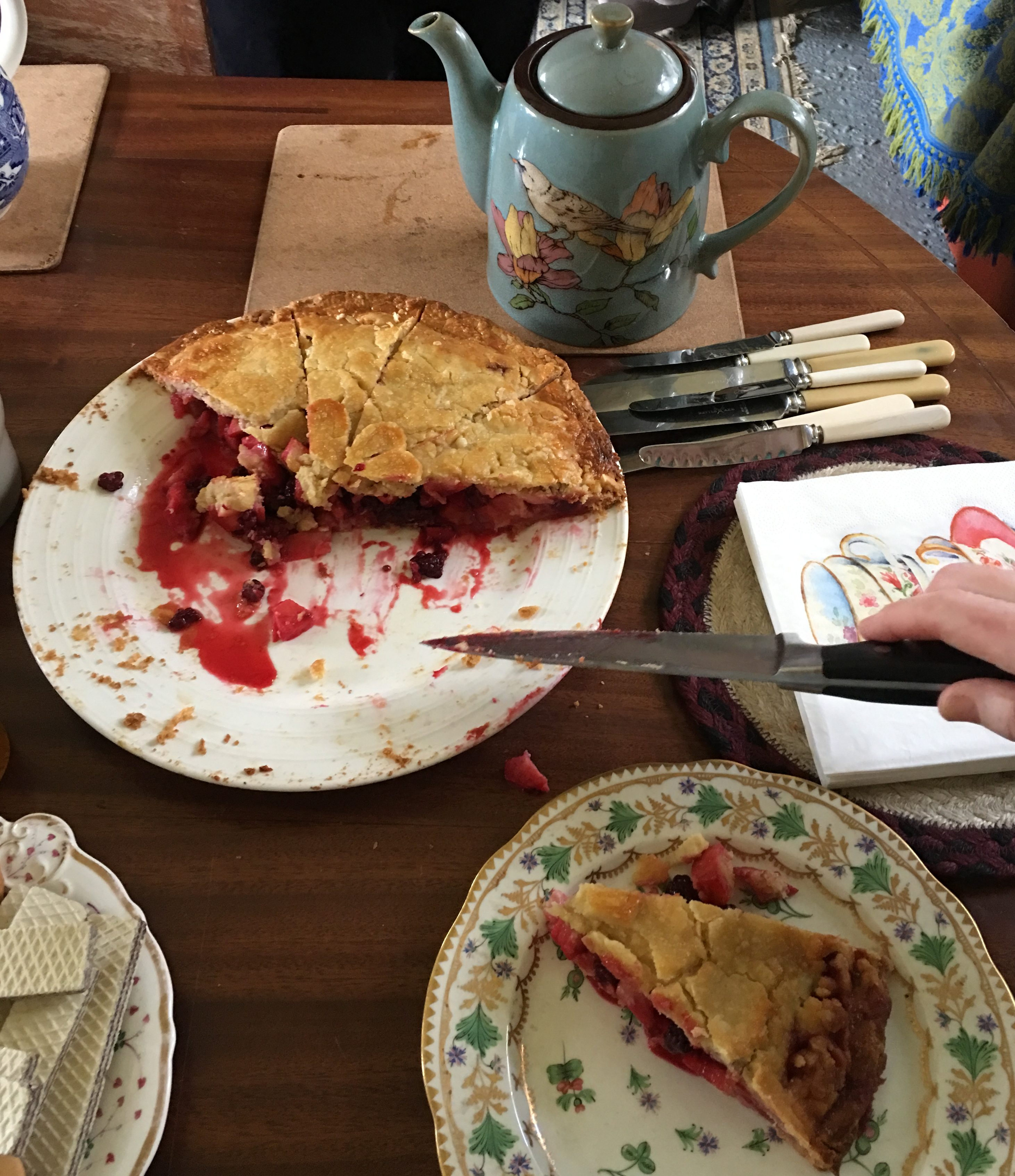 マーガレットさんの家に戻ってきたら、お手製のスコーンやフルーツパイやケーキが並んでいて、もうすっかりティータイムの準備ができていました!