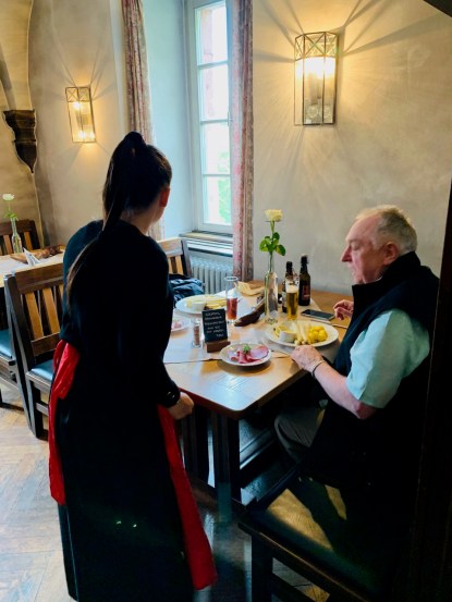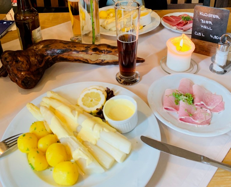 Le déjeuner à la brasserie de Kloster Eberbach était… les asperges blanches!!