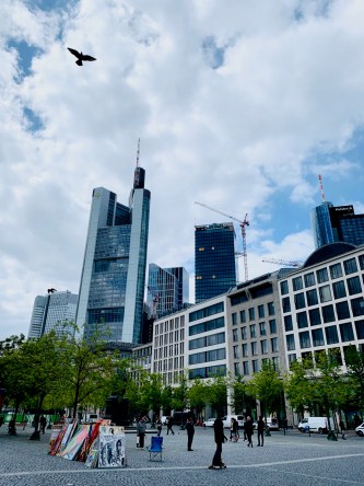 On avait déjà vu un peu de Frankfurt samedi, mais lundi matin, on est partis explorer le quartier qu’on connaissait bien, au centre ville d’abord et aussi du côté de Sachsenhausen, de l’autre côté de la rivière Main.