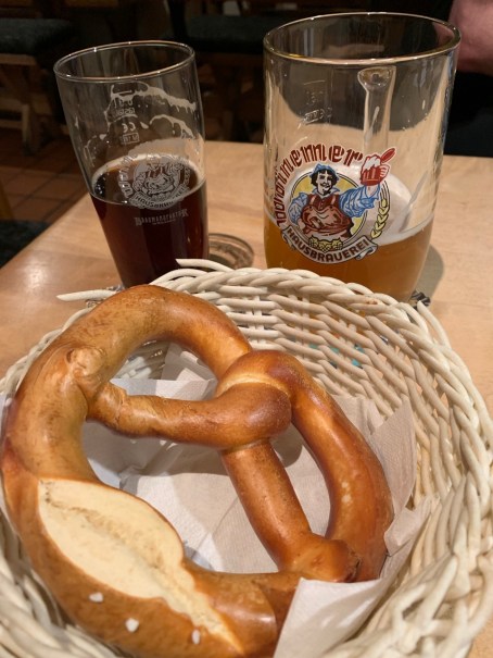 昼ごはんは、またハイデルベルグ方面へドライブの遠出。ワインハイムのバーニーのお気に入りのビールを飲みながら、がっつりドイツのものを食べました。(食べきれないし塩からい)