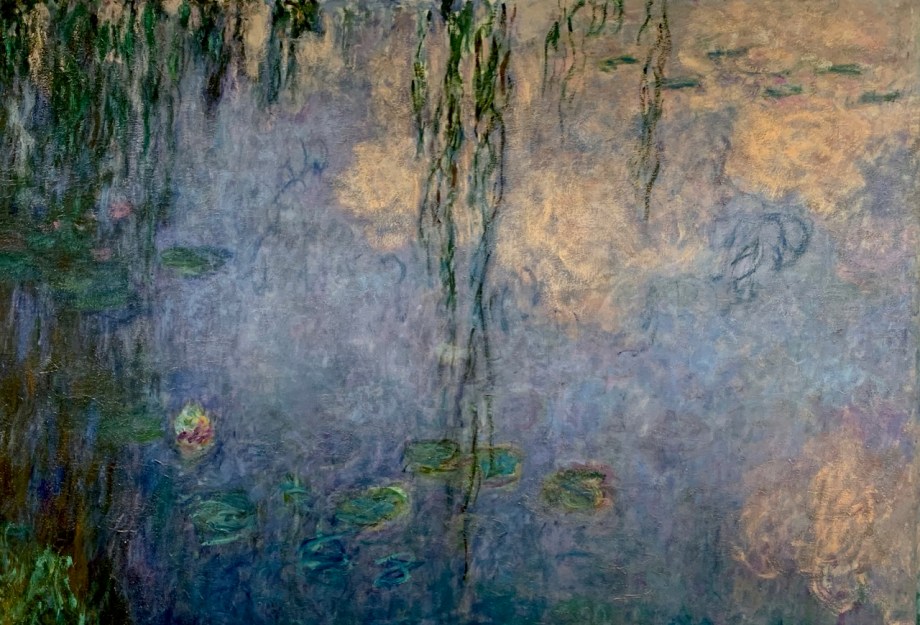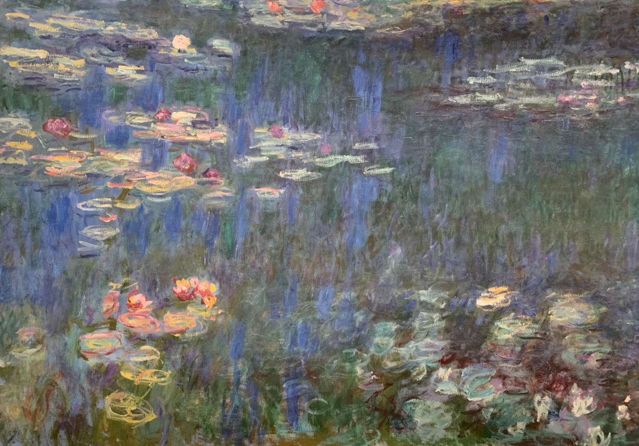 この連作を描いていたころのモネは、年老いていくわ視力は落ちるわで、ともすれば挫けそうだったところに親友のジョルジュ・クレマンソーが毎週末来て昼ごはんを一緒に食べて話をして、長年の友情で支えたのだという話。