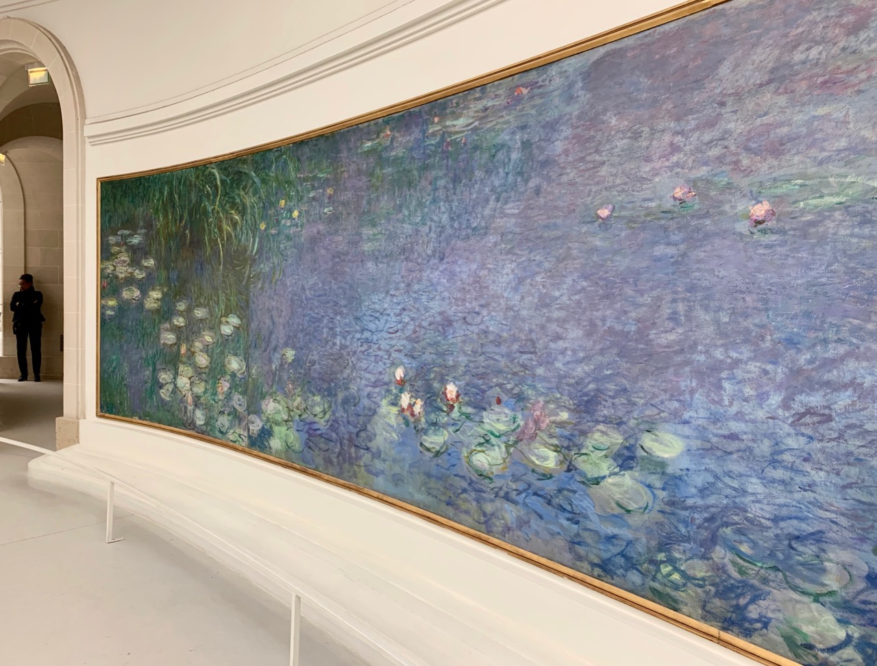 Elle m’a parlé de l’amitié de George Clémenceau qui a soutenu Monet jusqu’à la fin de sa vie pour la réalisation de ces magnifiques tableaux, et ensuite qui a réalisé cet espace qui continue de nous charmer. Dans les salles ovales des nymphéas, chaque fois qu’on visite, la lumière est différente. Chaque fois, c’est comme si on y arrive pour la première fois.