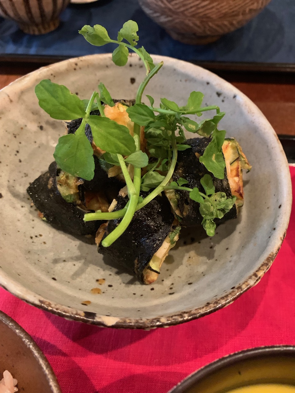 2019/07/012019/08/09 野菜いっぱいランチ déjeuner végétarien なると屋+典座 やさいをたくさん使った旬の食事 赤いのはトマト シシトウの味噌炒めがのっていて、最高に美味しかった。味噌が柔らかな味わい。甘すぎず辛すぎず。 茄子、蓮根、ズッキーニを海苔で巻いた揚げ物。さくさく。 汁は 南瓜、青ゆず。小鉢は冬瓜。 冬瓜も、日本でなければ食べられない野菜なので嬉しいです。 小町通りで 呉服屋さんに寄ったり、竹細工のお店でスプーンを買ったり。 Share this: Click to share on Facebook (Opens in new window) Facebook Click to share on X (Opens in new window) X Click to share on Tumblr (Opens in new window) Tumblr Click to share on Pinterest (Opens in new window) Pinterest Click to email a link to a friend (Opens in new window) Email More Click to print (Opens in new window) Print Like Loading...