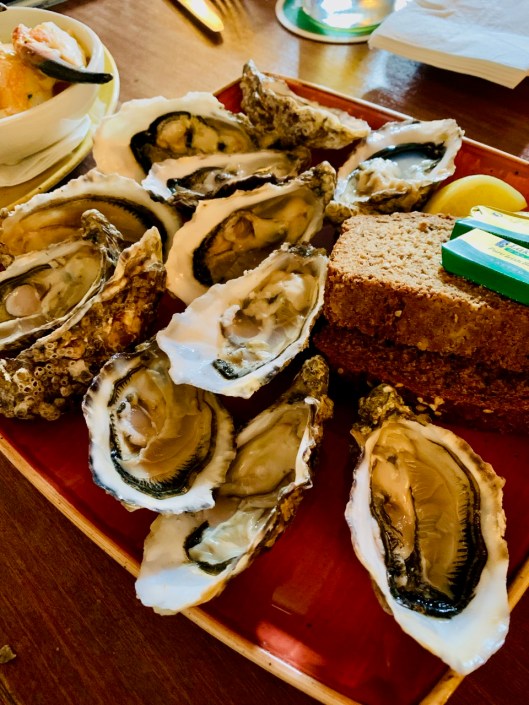 On a été la chercher à l’aéroport et on est partis directement à Carlingford, à la frontière avec l’Irelande du nord. Déjeuner huîtres chez PJ O’Hares et on s’est promenés le long de la baie.