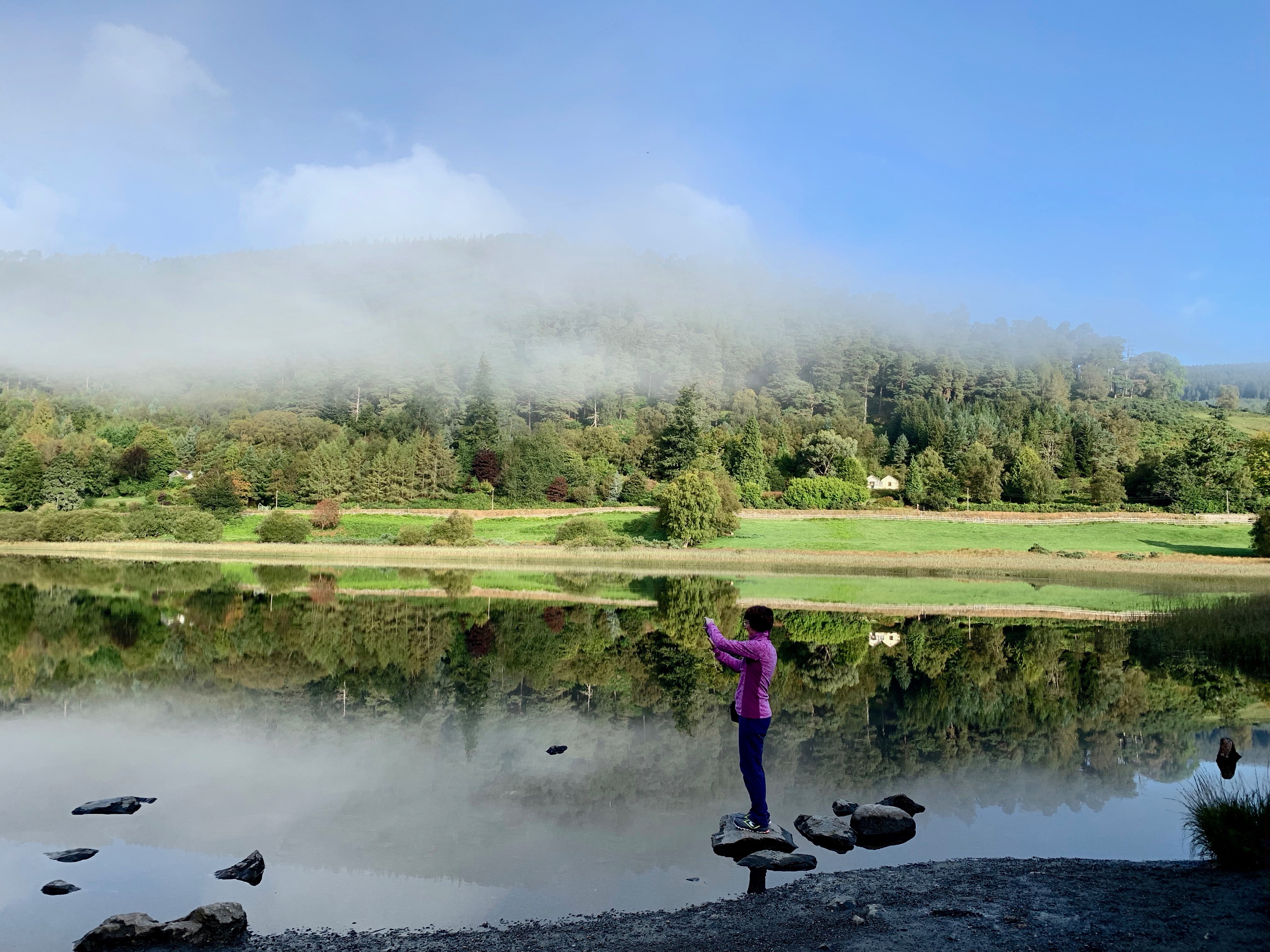 Toute la semaine, j’étais vraiment concentrée sur les épeuves ( tâche presbytique? ) et donc je ne suis pas allée marcher. Mais vendredi le 18, j’ai fait plein de photos à Glendalough, par un matin brumeux. Très beau, vraiment la fin d’été.