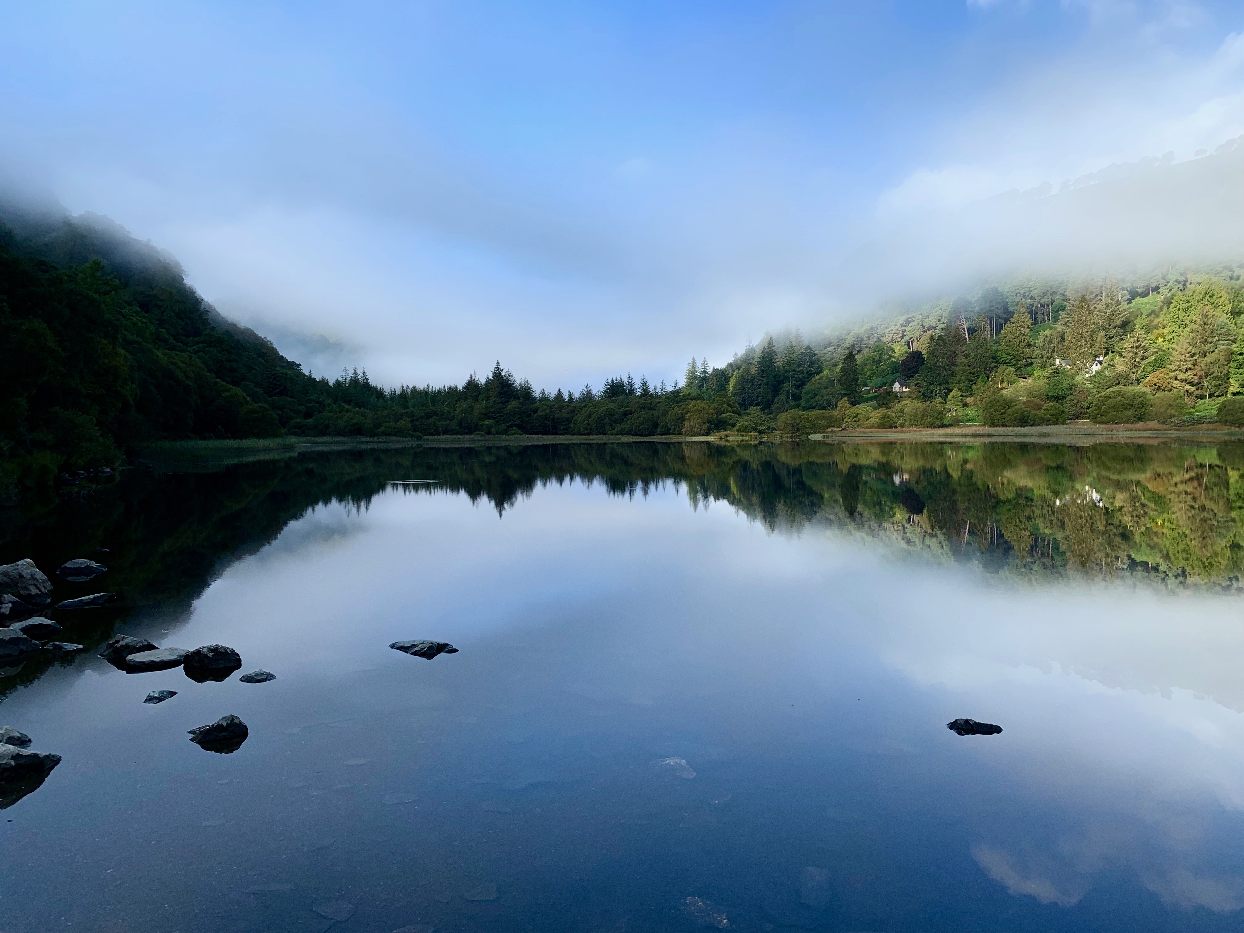 9月18日(水)のダム湖の周りのウオーキングはとても天気がよかったけれども、20日(金)のグレンダロッホは霧の朝でした。とても美しい朝だったのでたくさん写真を撮りました。