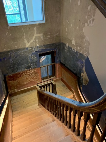Ensuite après la Grande Famine qui a frappé le pays au milieu de 19ème siècle, la classe bourgeoise anglaise étant partie regagner leur pays d’origine, ces bâtiments se sont trouvés vacants. Et ces spacieuses salles et chambres ont été transformées en une multitude de petits appartements destinés à loger les pauvres. Et ça a servi jusqu’aux années 70.