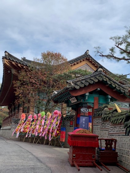 Ensuite on a pris un taxi pour monter vers la résidence présidentielle (la Maison Bleue). On est passés par un tunnel – qui a été réalisé par le célèbre Président Park Chung-hee (le chauffeur de taxi nous a expliqué) et on est arrivés à un très beau site SamcheongGak.