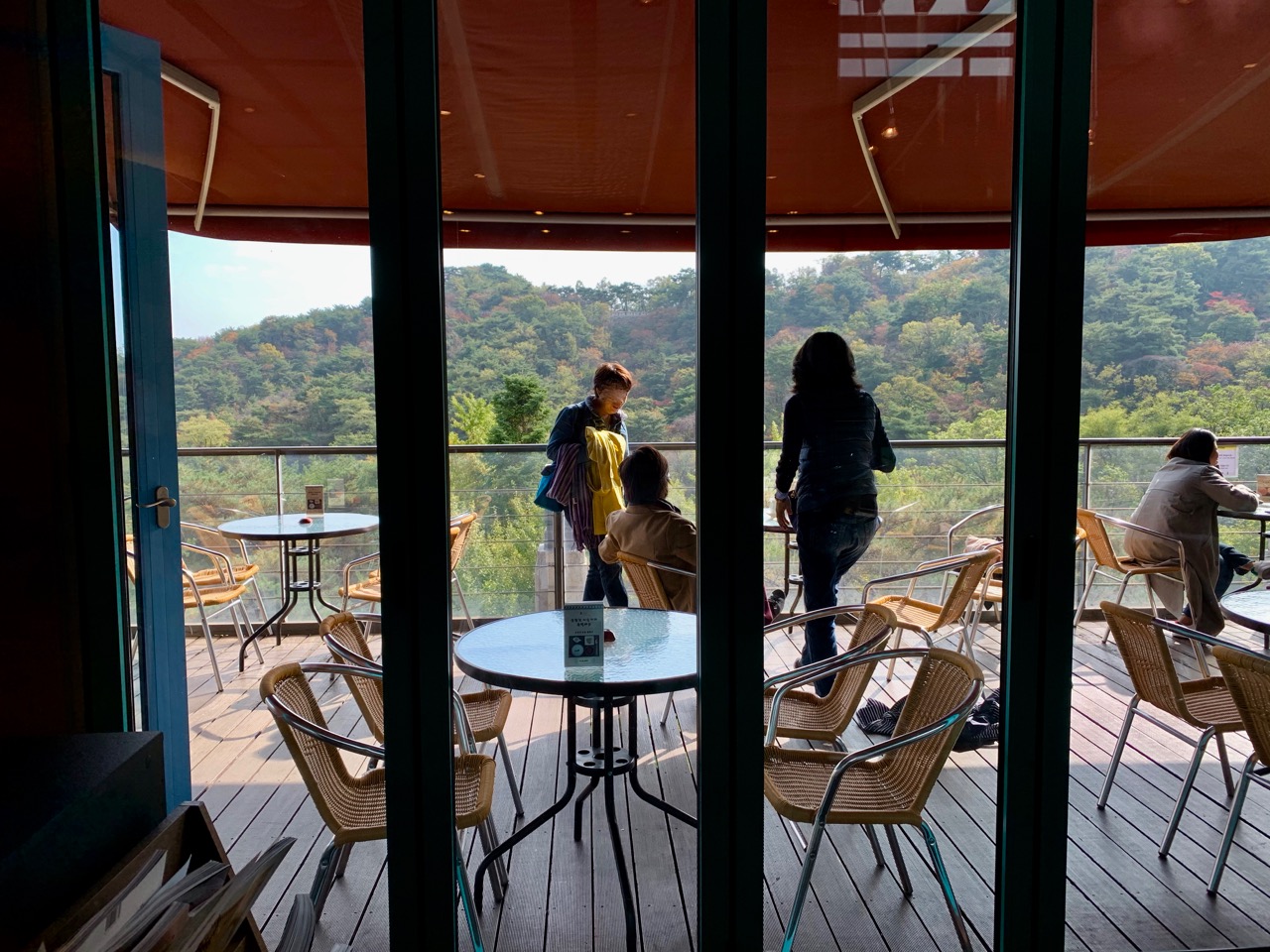 外の景色の良いテラスに座って、高台からソウル方面を見渡しながら、お茶の時間。