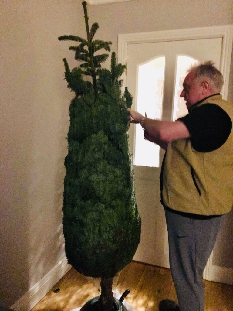 Un vrai sapin pour Noël 2019, parce que je me suis dit ‘Pourquoi pas?’ après plusieurs années de déco-bio-utilisation des branches trouvées dans le jardin.