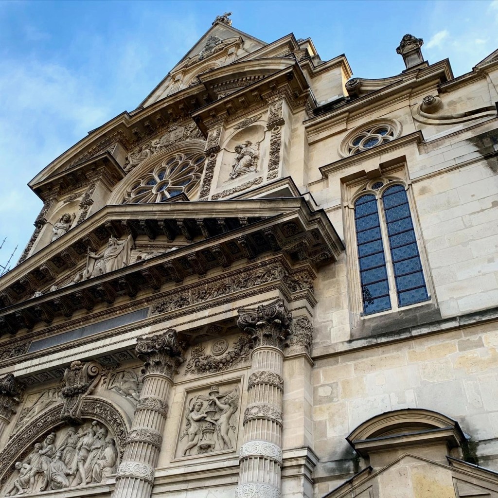 右のほうに見える塔も、昔は聖ジュヌヴィエーブの修道院と教会があった名残なのだそうです。つまりSte GenevièveとStEtienne du Montとふたつの教会がくっついてあったのだけど、ある段階でSte Genevieveは壊されてなくなってしまい、塔だけが残っているのだそうな。
