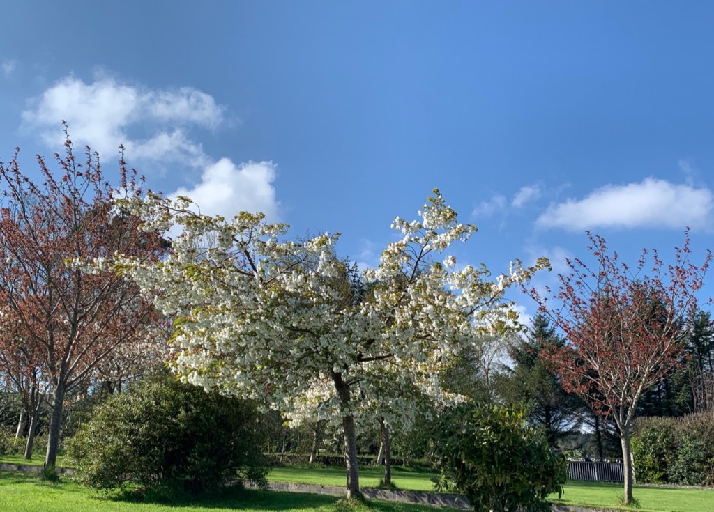4月20日(月) アイルランドは外出禁止が続いています。庭の桜の木が花盛り。自宅から2km以内をぐるっと大きく回るウオーキングのコース 標高差が136mほどあり少し身体が暖まる良い運動。