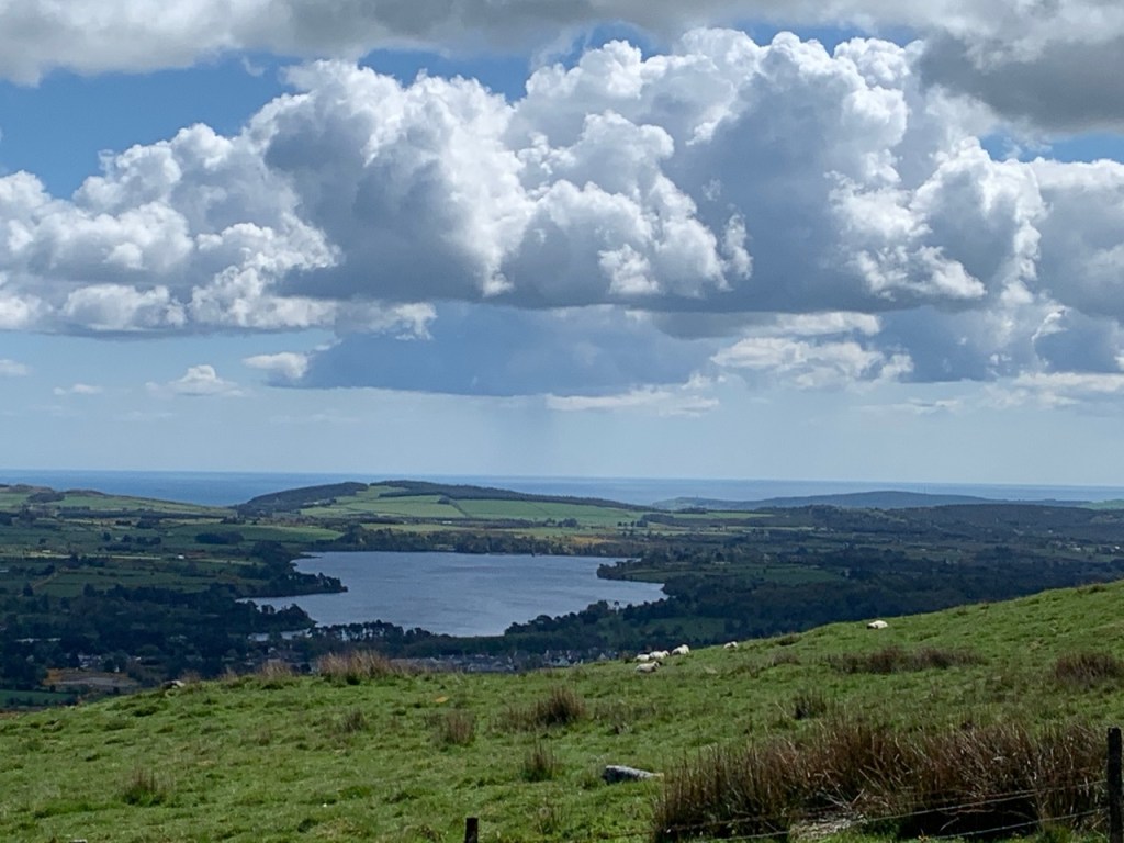 はじめは自宅からもいつも見える村の近くのダム湖Valtry Reservoirを眼下に見ながら歩き、コースの後半はひとつ山を越えた後ろのほうにあるLough Danも見えて、気持ちのよいウオーキングでした。