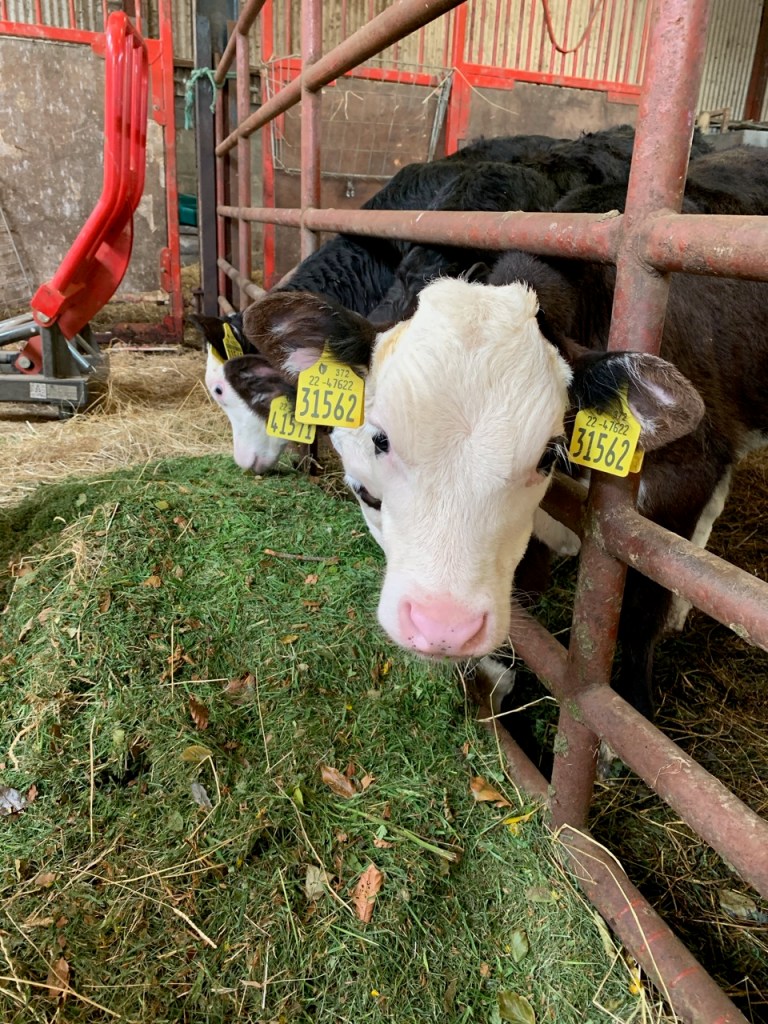 (5月25日のつづき) ブリッドのおうちへ行って、日向ぼっこしながら お茶をご馳走になり、そのあと仔牛さんたちを見せてもらいました。