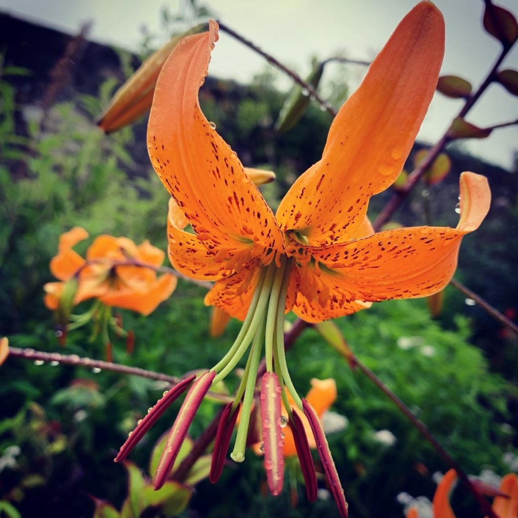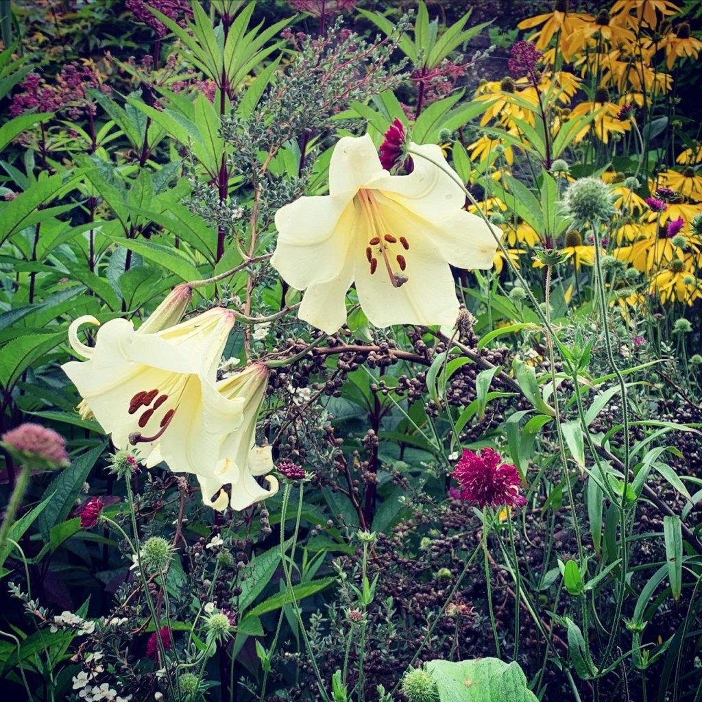 雨上がりの朝の庭をゆっくり歩いて、緑したたる植物からエネルギーをもらいました。